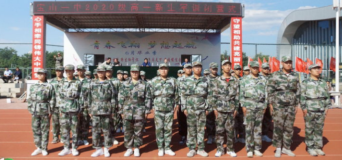 为创建优良的校风,强化新生遵规守纪的意识,培养良好的行为习惯,学习军人的良好作风,初步掌握队列队形的规范及要求,为培养健康的人格奠定良好的基础。8月31日-9月5日元宝山区第一中学对高一年级新生进行了入学教育、军事训练和生活内务训练。8月31日下午,学校在操场上举行了举行开营仪式,元宝山区第一中学党委书记、校长聂洪波为高一年级各个班级授旗。